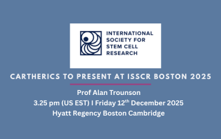 - Cartherics’ Deputy Chair, Prof. Alan Trounson AO will be presenting at ISSCR 2025 on Friday 12th December, 2025 at 3.25pm (US EST)